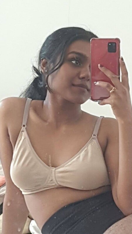 Indian girl in shirt has shown naked round boobs